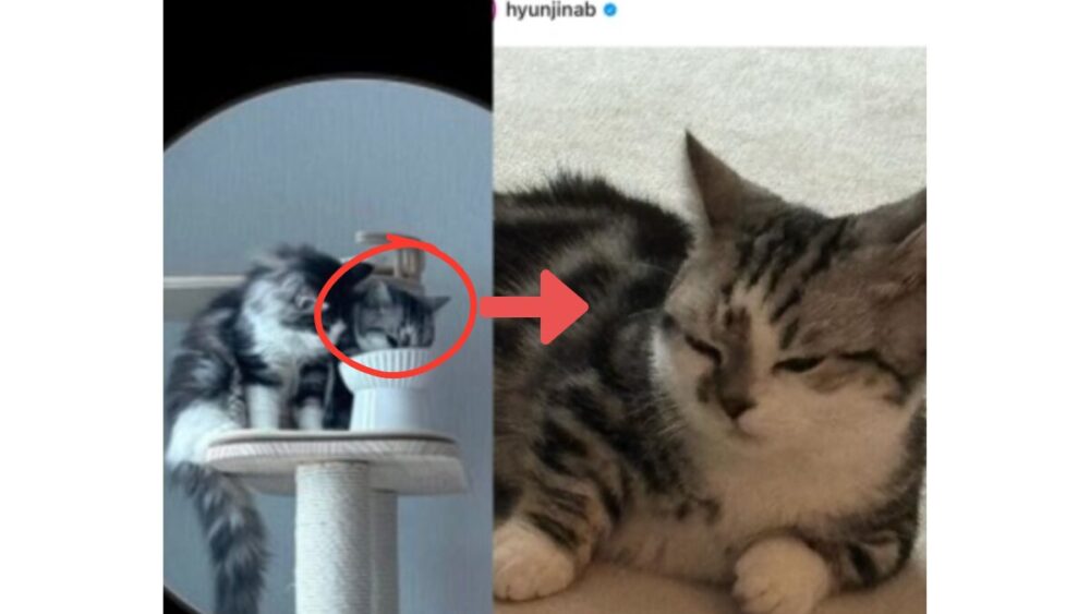 ATEEZウヨンさんのInstagram裏アカと噂されているプロフィール画像を拡大すると、写真の右側に写っている猫がヒョンジンさんの飼い猫に似ていることがSNS上で話題に!