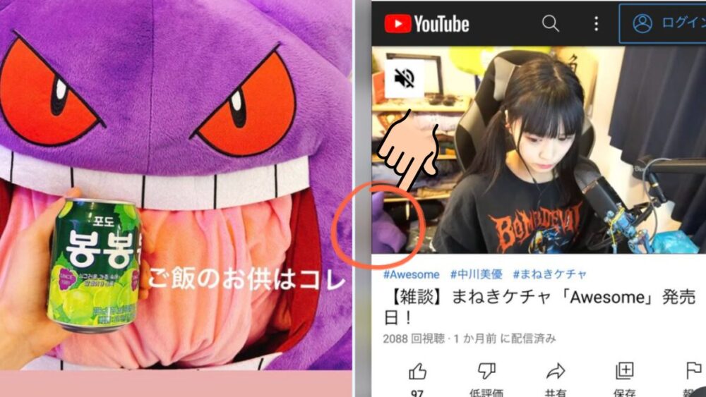 このゲンガーのぬいぐるみが、中川美優さんのYouTube配信時にも映り込んでいたことから、「2人はお揃いのぬいぐるみを持っているのでは?」との噂に。