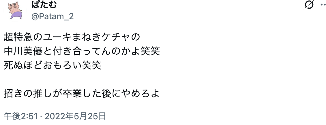 ですが、SNSでは、超特急ユーキさんと中川美優さんの匂わせについてこういった意見が出ています。