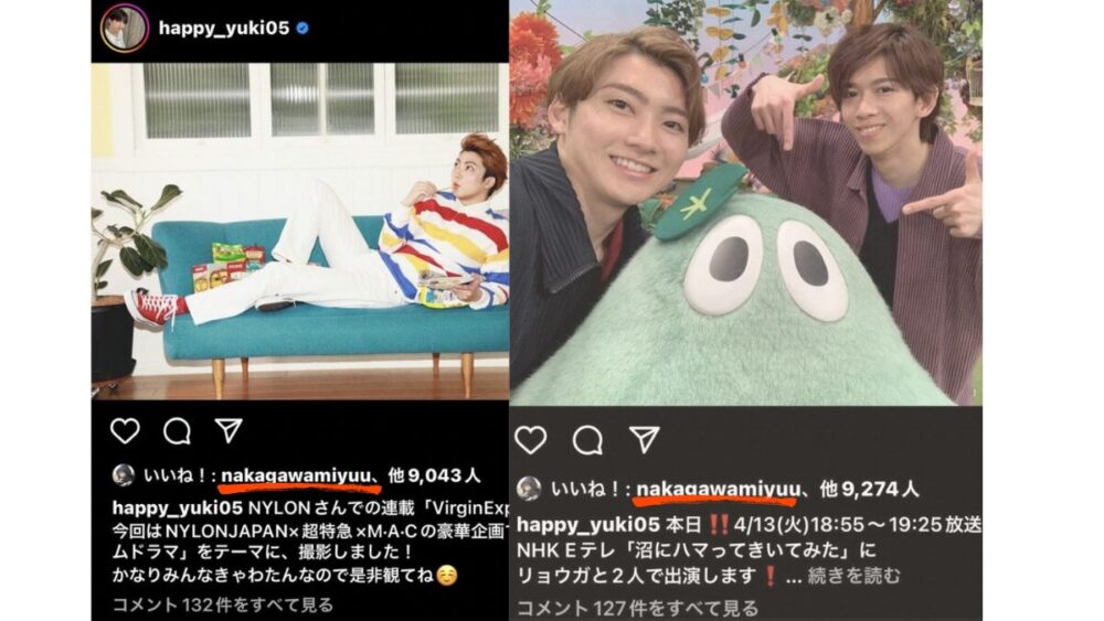超特急のユーキさんと中川美優さんは、SNS上に何度もペアルックと思われるほどに似ている写真を投稿していました。