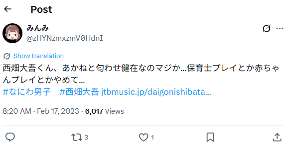 西畑大吾さんとあかねさんの匂わせに関する投稿はあまり多くないようですね。