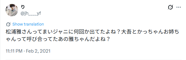 そもそも、西畑大吾さんと松浦雅さんに接点はあったのでしょうか。