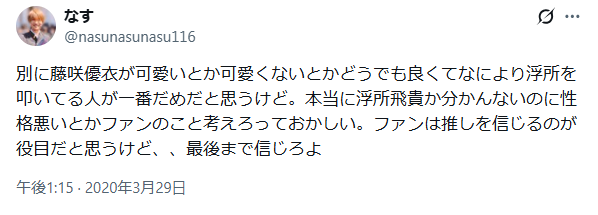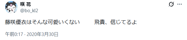 しかし、これが藤咲優衣さんの投稿かどうか不明ですし浮所飛貴さんとのやり取りかどうかも分かりません。