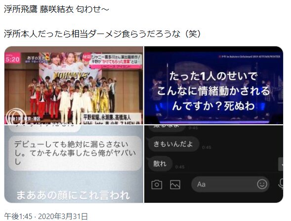 浮所飛貴さんの顔写真も出ており名前も「ゆい」となっていることから、藤咲優衣さんとの関わりがあるような投稿に見え、交際しているのではないかと言われたようです。